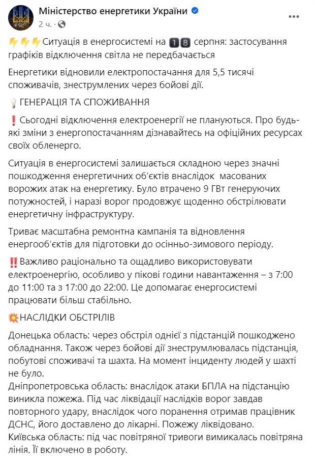 По его словам, жара возвращается, и сложная погода может привести к повышению потребления. А система остается уязвимой после обстрелов, что может привести к дефициту электроэнергии.