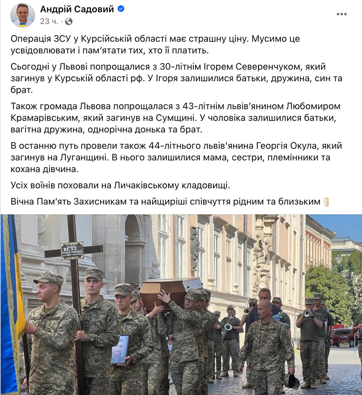 Так он прокомментировал гибель двух львовян, которых вчера похоронили в городе.