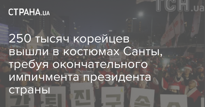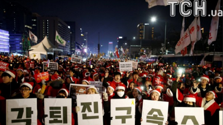 Сегодня, 24 декабря, в канун Рождества в Сеуле, около 250 тысяч человек вышли на акцию протеста против президента страны Пак Кын Хе. На этот раз люди нарядились в костюмы Санта Клаусов. Об этом сообщает AFP.