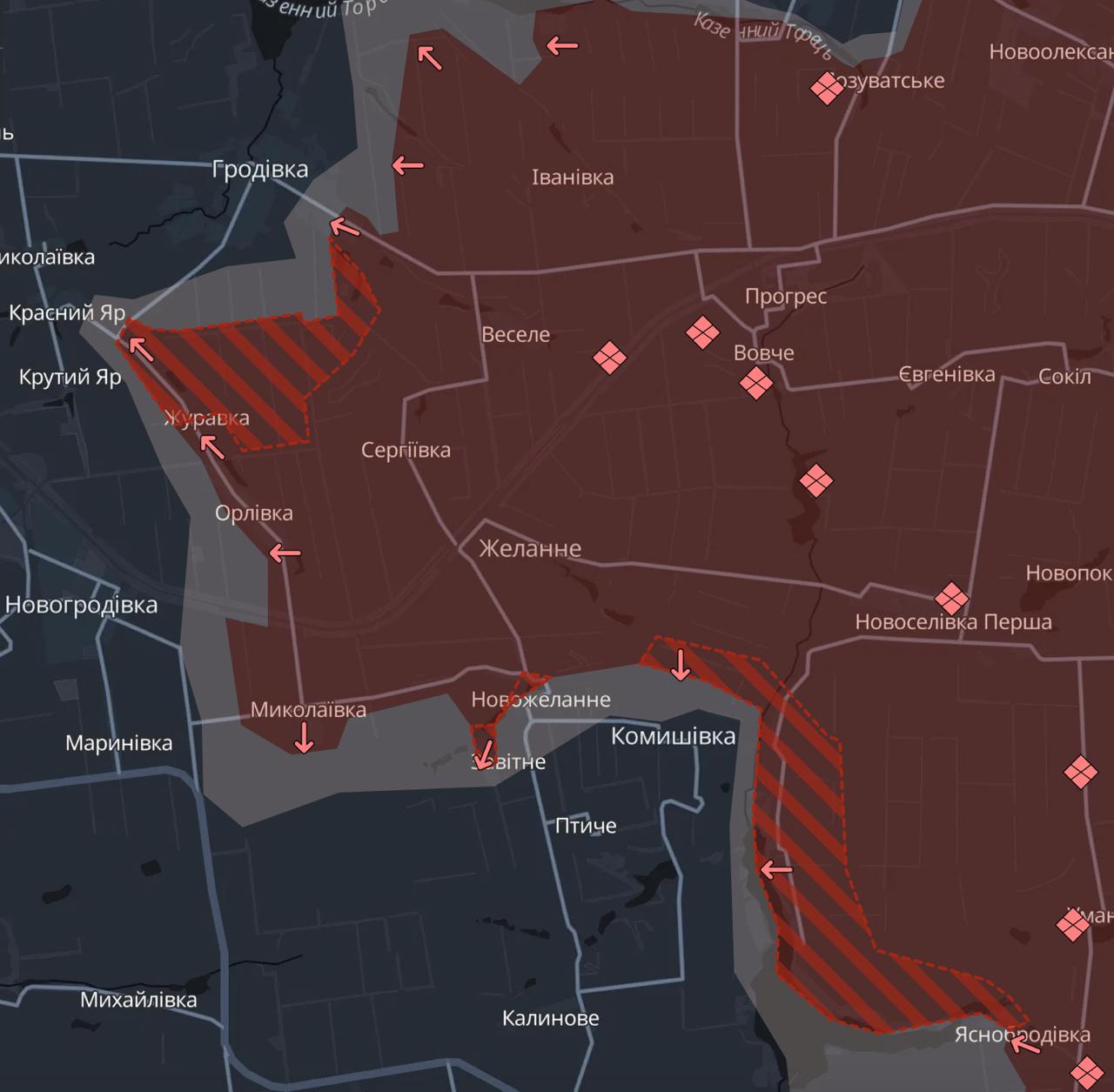 Россияне захватили на Покровском направлении три села - Межевое, Скучное и Журавку - а также продвинулись возле Гродовки и Заветного.
