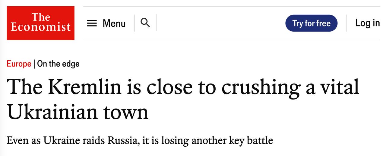 "Украина возлагала большие надежды на то, что внезапное наступление в Курской области ослабит давление. Однако наступление России только ускорилось", - пишет издание.