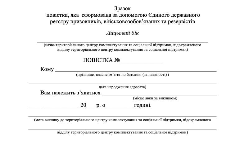 Кабинет министров Украины утвердил новый вид повесток от ТЦК. Они будут формироваться на бланке либо через "Оберег".