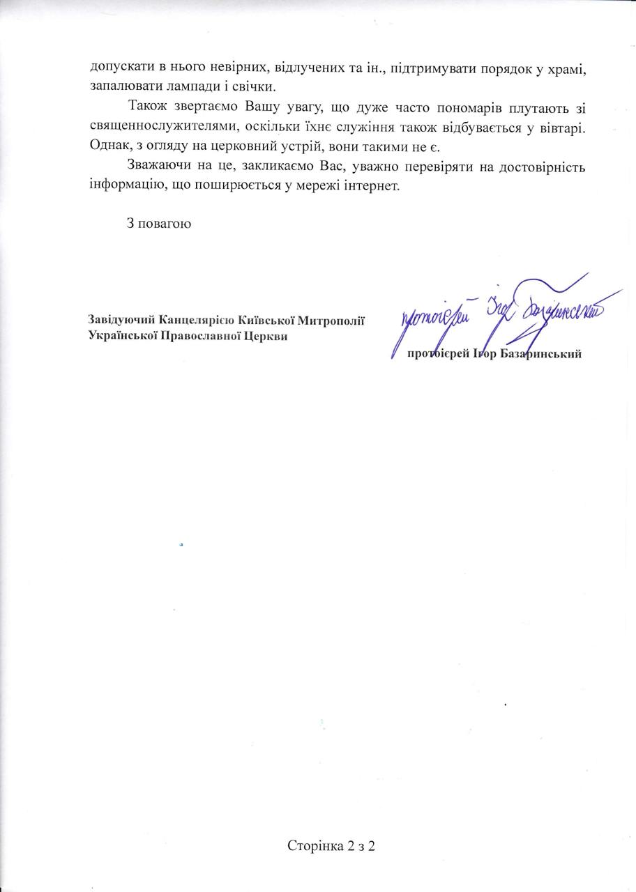 Об этом заявили в Украинской православной церкви в ответ на адвокатский запрос.