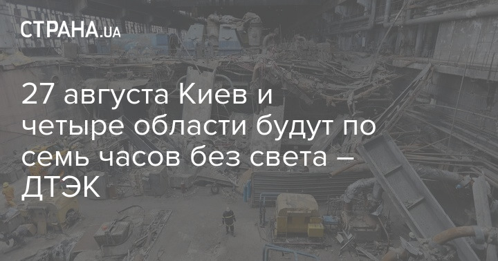 Без электроснабжения по семь часов подряд завтра, 27 августа будут Киев и четыре области Украины.