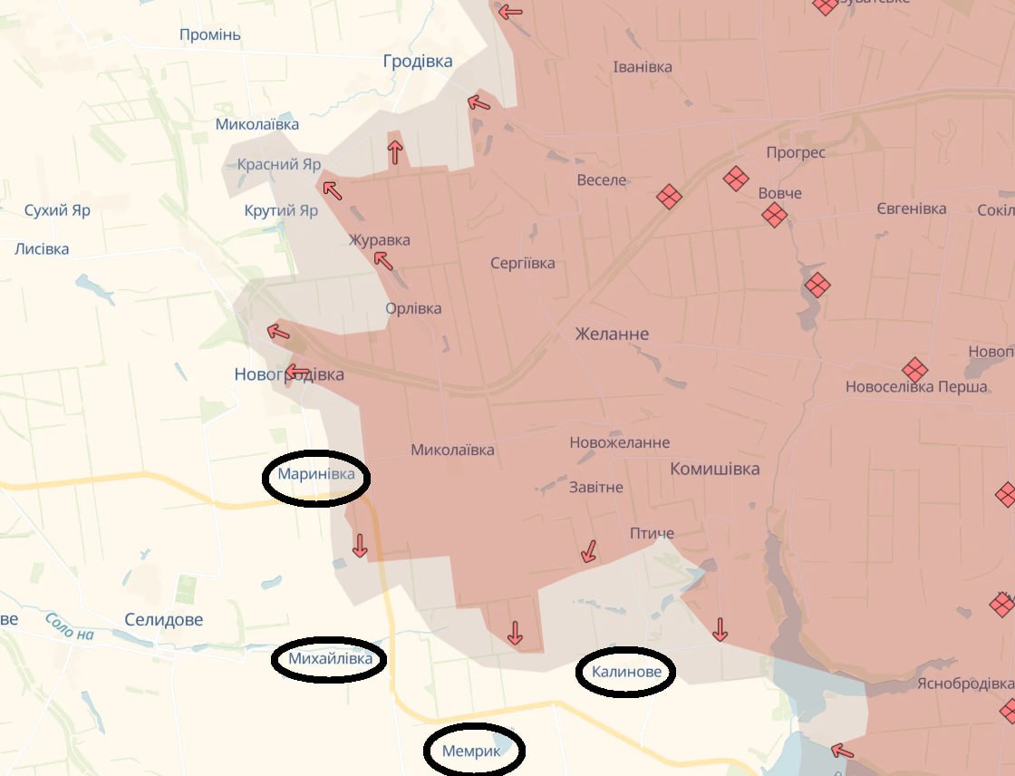 Если российским войскам удастся захватить также Мариновку и Михайловку, то это будет означать начало штурма Селидово.