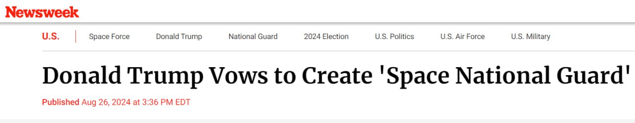 "Одним из моих самых гордых достижений в первый срок было создание Космических сил, первого нового подразделения Вооруженных сил за более чем 70 лет... Теперь, когда Космические силы созданы и действуют, я согласен с вашим руководством в том, что пришло время создать Космическую национальную гвардию в качестве основного боевого резерва Космических сил США", - сказал Трамп в своем выступлении.
