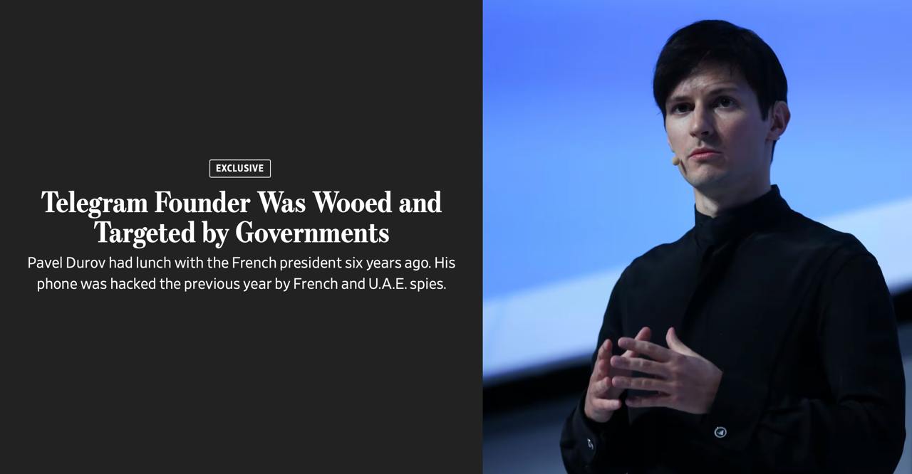 "Основатель Telegram подвергся преследованиям со стороны правительств", - озаглавлен материал. Они "пытались как задобрить, так и контролировать его".