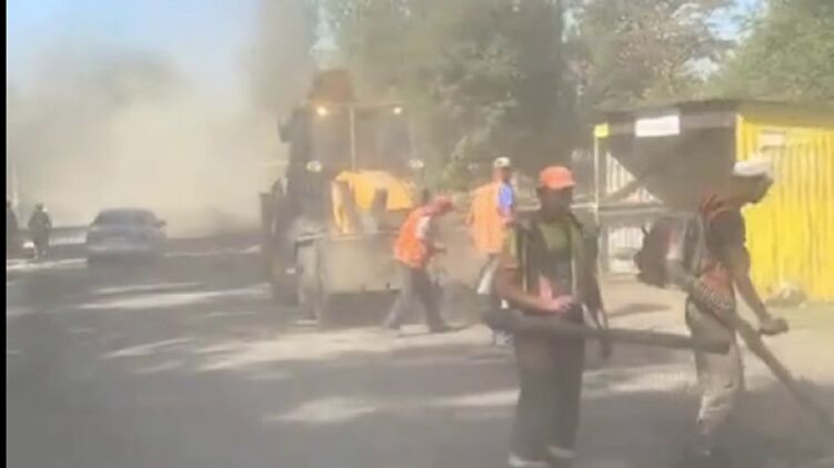 В Дружковке, что в 20 км от линии фронта, делают дорогу. Соответствующее видео появилось в сети.