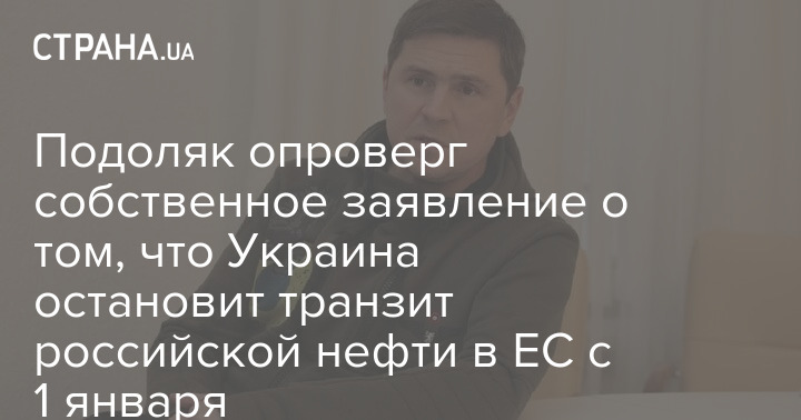 Подоляк опроверг собственное заявление о том, что Украина остановит транзит российской нефти в ЕС с 1 января