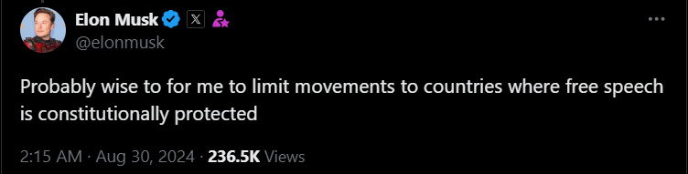 Напомним, что вчера Верховный суд Бразилии постановил приостановить работу принадлежащей Илону Маску соцсети X в стране после того, как она отказалась назначить своего представителя в стране.