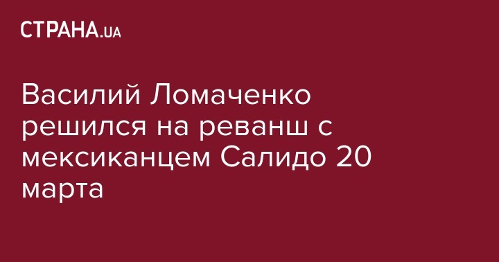 Украинский боксер, чемпион мира в первом легком весе по версии WBO Василий Ломаченко собирается провести матч-реванш против экс-чемпиона мира в полулегком весе 36-летнего мексиканца Орландо Салидо. Об этом сообщает пресс-служба Ломаченко.