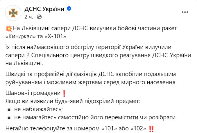 Во Львовской области сапёры изъяли боевые части российских ракет "Кинжал" и "Х-101"