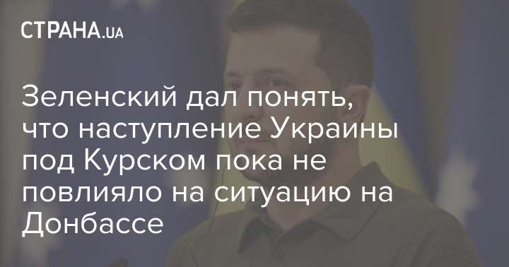 Президент Украины Владимир Зеленский дал понять, что операция ВСУ в Курской области России пока не повлияла на ситуацию на Донбассе.