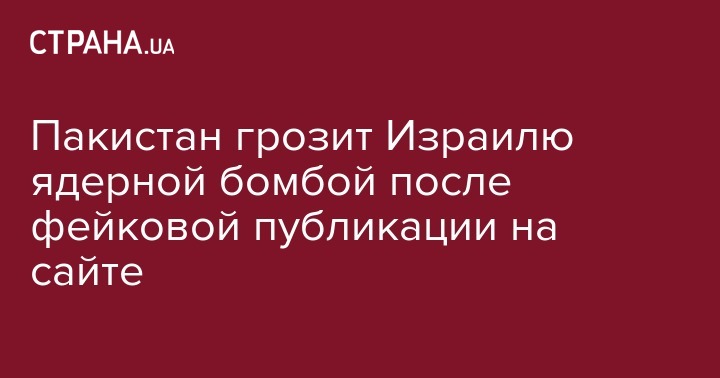 Министр обороны Пакистана Асиф Хаваджа угрожает Израилю ядерным оружием после опубликованной новости об аналогичных угрозах со стороны Израиля на новостном сайте AWD News, которая оказалась фейковой. Об этом сообщает ВВС