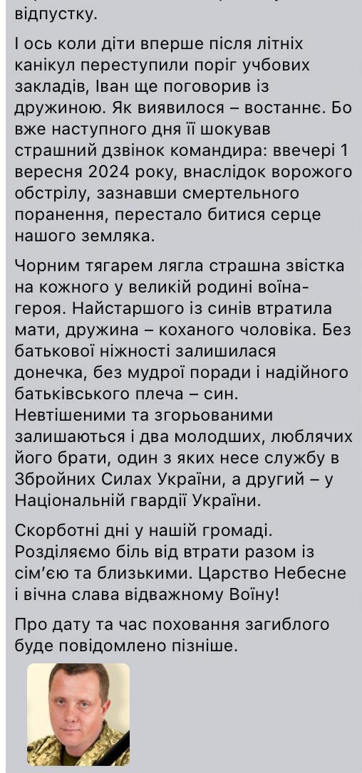 09:42 Водитель установки ПВО "Пэтриот" Иван Кияшко погиб 1 сентября от российского обстрела. Об этом сообщил Золочевский сельсовет Киевской области.