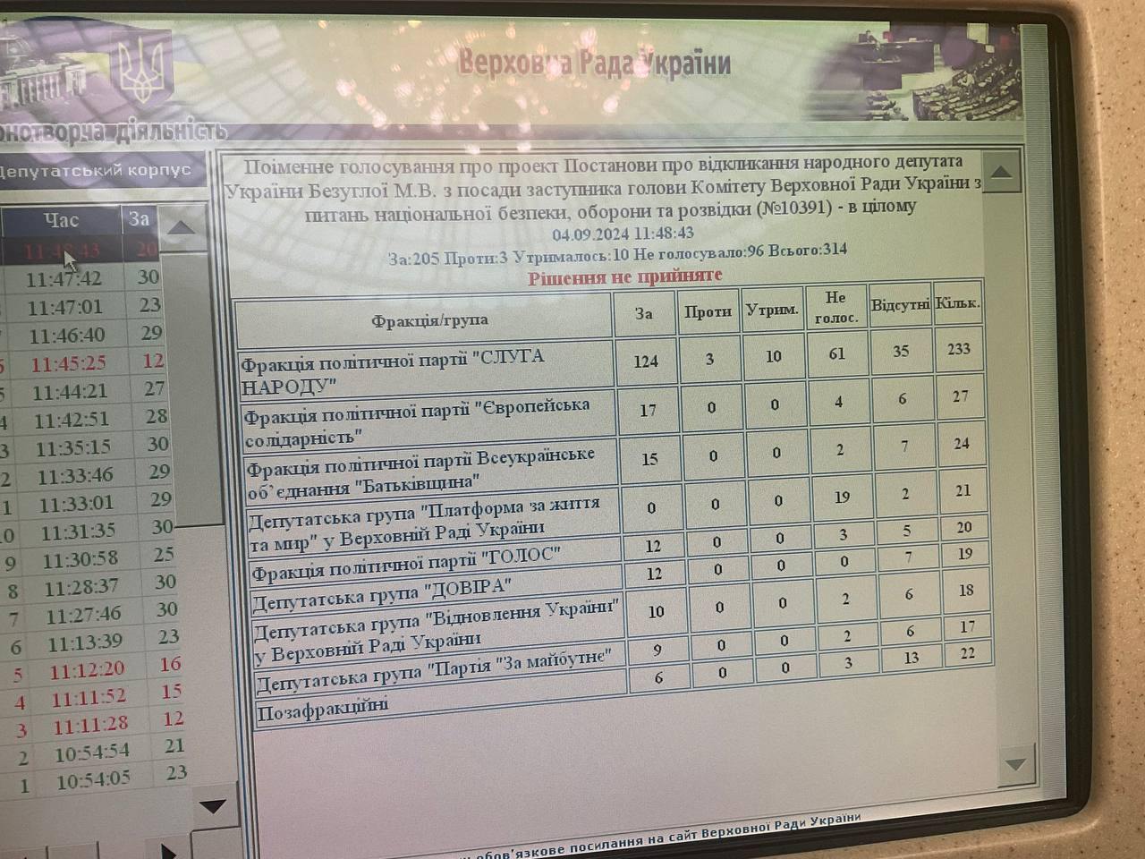 Верховная Рада провалила голосование о снятии Марьяны Безуглой с должности заместителя главы Комитета по вопросам национальной безопасности.
