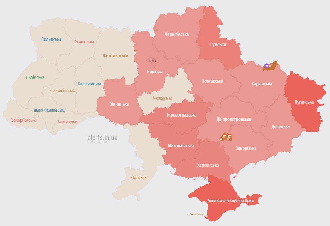 23:44 Тревога в большей части страны.