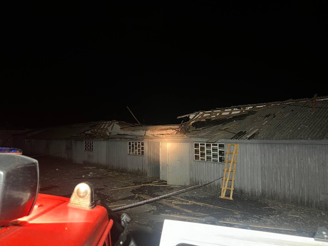Пожарные приехали на место прилета дрона по инфраструктуре и попали под обстрел. Сгорело их авто.