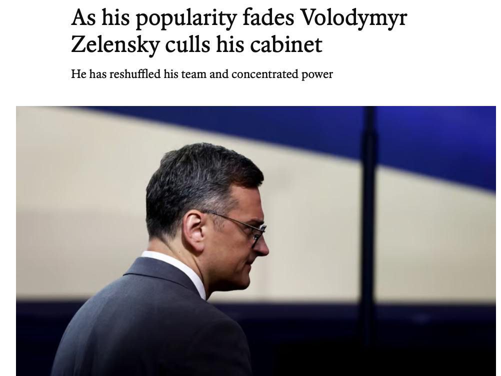 Президент Украины Владимир Зеленский произвел кадровые перестановки в правительстве из-за падения собственной популярности, так пишет британский журнал The Economist.