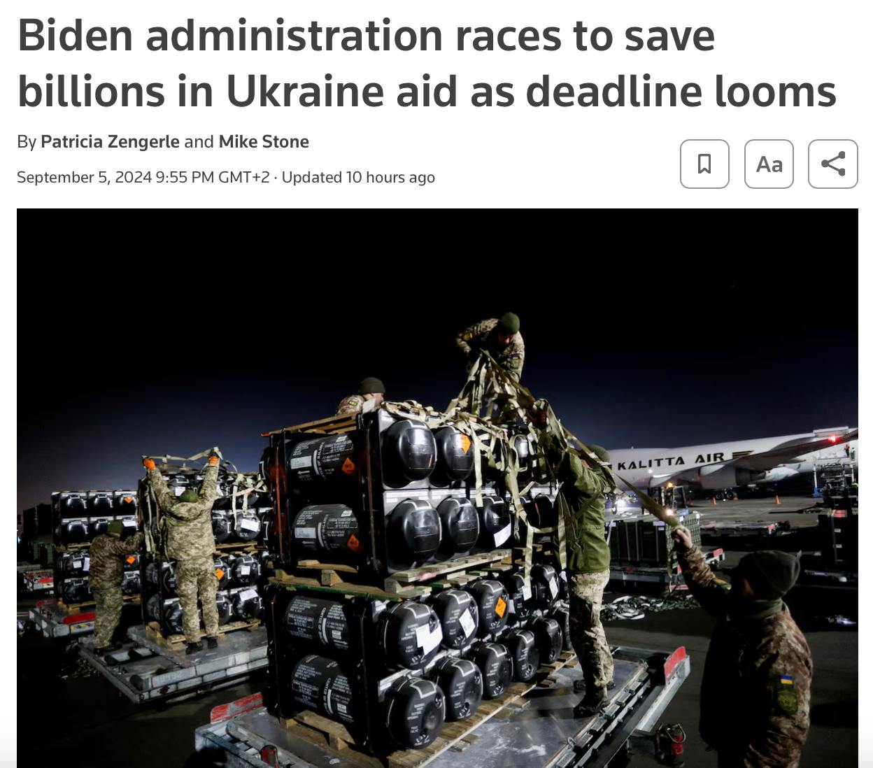 Большая часть из 7,8 миллиардов долларов, выделенных в апреле, до сих пор не была использована, и "чиновники лихорадочно ищут способ, как не дать сгореть оставшимся 6 миллиардам до приближения 30 сентября - конца 2024 финансового года".