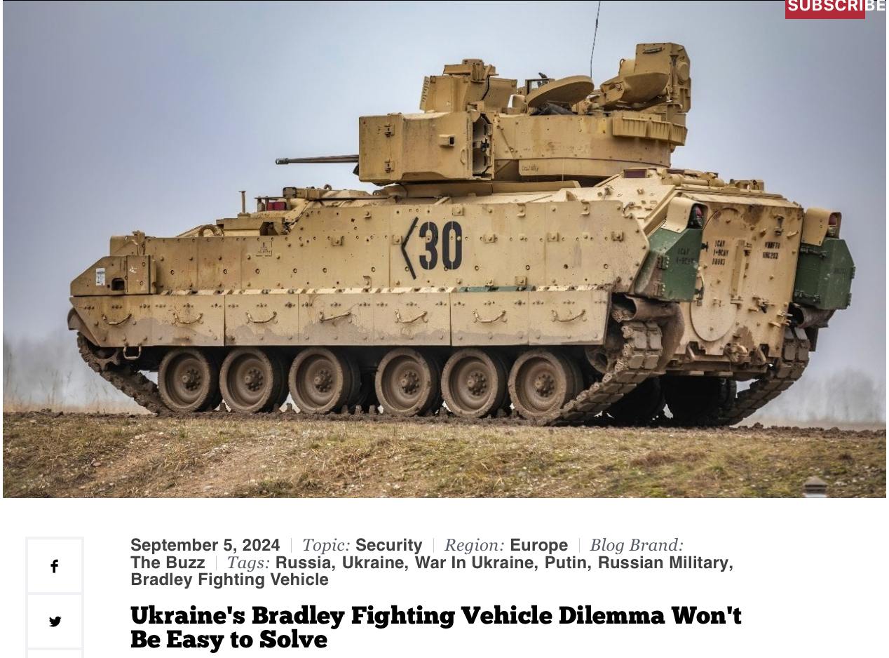 Но более 68 таких машин были потеряны Украиной из 186 присланных. Издание относит большую часть потерь к неправильной эксплуатации "Брэдли" — из-за недостатка обучения украинцев.
