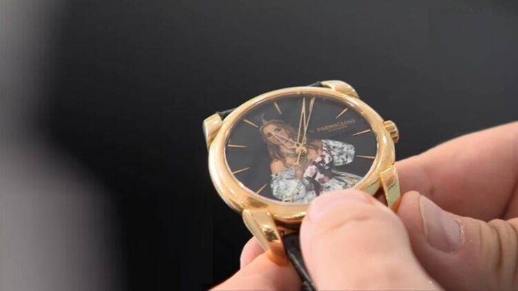На проданных часах швейцарского бренда Parmigiani Fleurier Марченко изображена в платье с корсетом.
