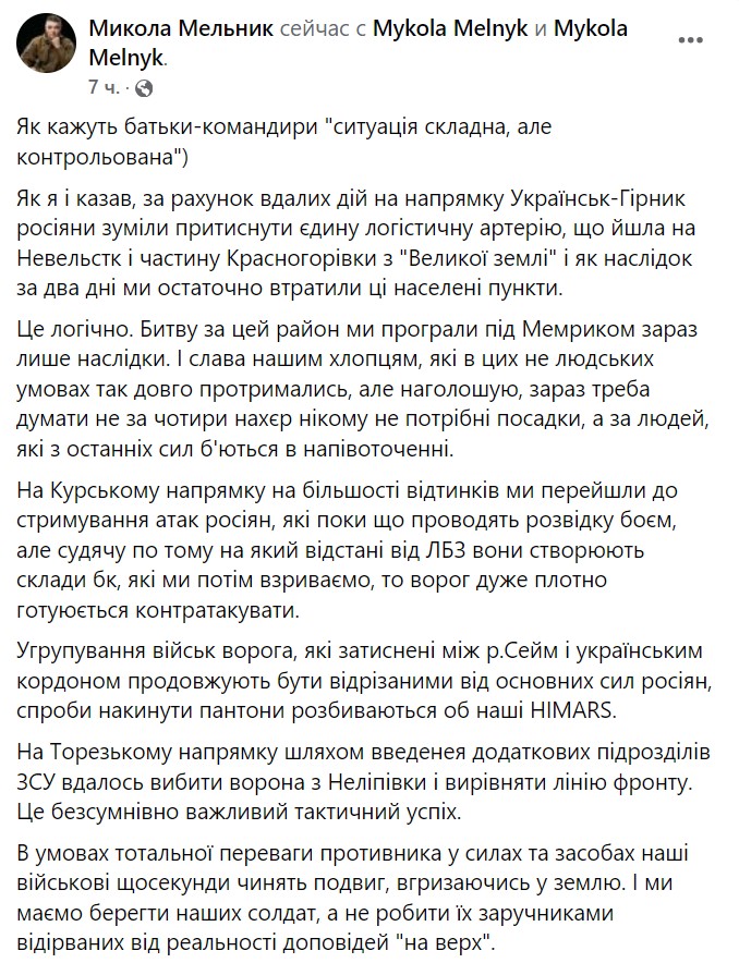 Также он пишет, что в Курской области ВСУ фактически перешли к обороне, сдерживая атаки россиян. По его оценке армия РФ в Курской области сейчас "плотно готовится" перейти в контрнаступление.