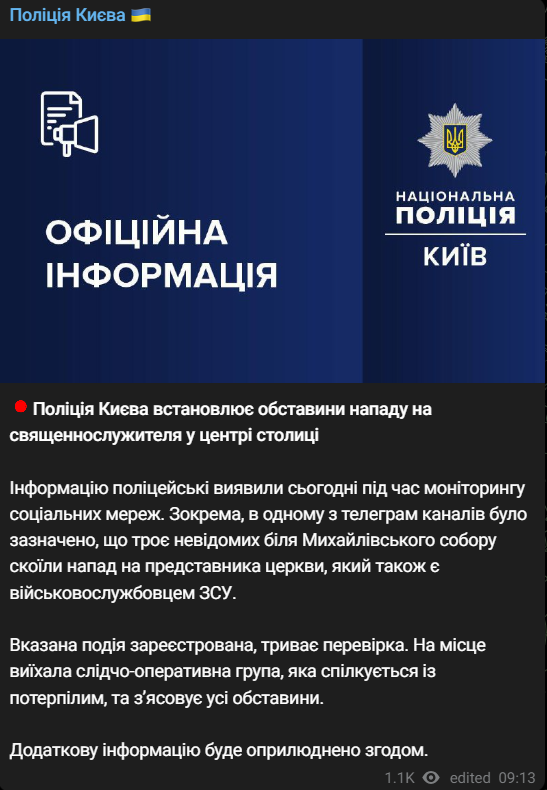 В Киеве вчера вечером избили митрополита ПЦУ Крымского и Симферопольского Климента, который также служит в ВСУ. Он шел в направлении Михайловского монастыря, когда его остановили трое и начали избивать.