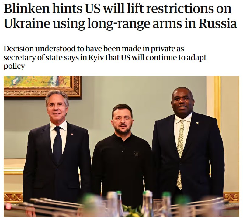 Отметим, что это заявление прямо противоречит не только официальной позиции Британии (сегодня Лондон заявил, что ограничения не снимались), но и сообщениям всех остальных западных СМИ, которые пишут, что решения о дальнобойных ударах по РФ ещё не принято и далеко не все в команде Байдена его поддерживают.