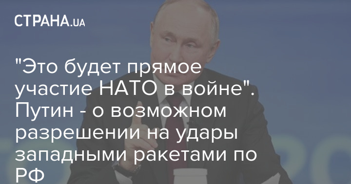"И поэтому речь идёт не о том, чтобы разрешать украинскому режиму наносить удары по России этим оружием или не разрешать. Речь идёт о том, чтобы принять решение о том, что страны НАТО напрямую участвуют в военном конфликте или нет. Если это решение будет принято, это будет означать не что иное, как прямое участие стран НАТО, Соединённых Штатов, европейских стран в войне в Украине. И это уже, конечно, существенным образом меняет саму суть, саму природу конфликта. Это будет означать, что страны НАТО, США, европейские страны воюют с Россией. А если это так, то, имея в виду изменение самой сути этого конфликта, мы будем принимать соответствующее решение, исходя из тех угроз, которые нам будут создаваться", - заявил Путин.