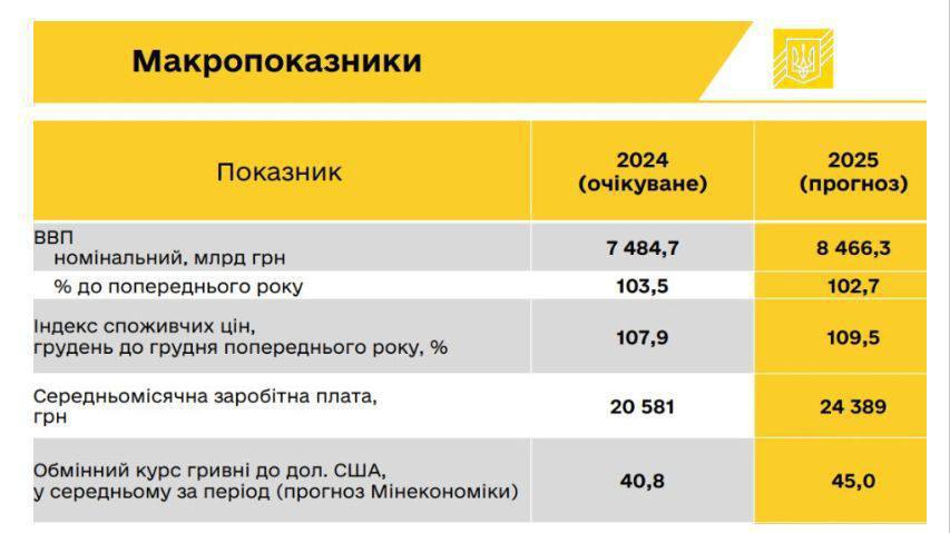 Также в проекте госбюджета говорится о том, что среднемесячная зарплата в 2025 году ожидается на уровне 24 389 гривен.