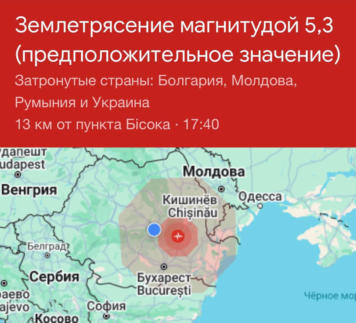Google подтверждает землетрясение с эпицентром в Румынии, которое ощущалось и в Украине.