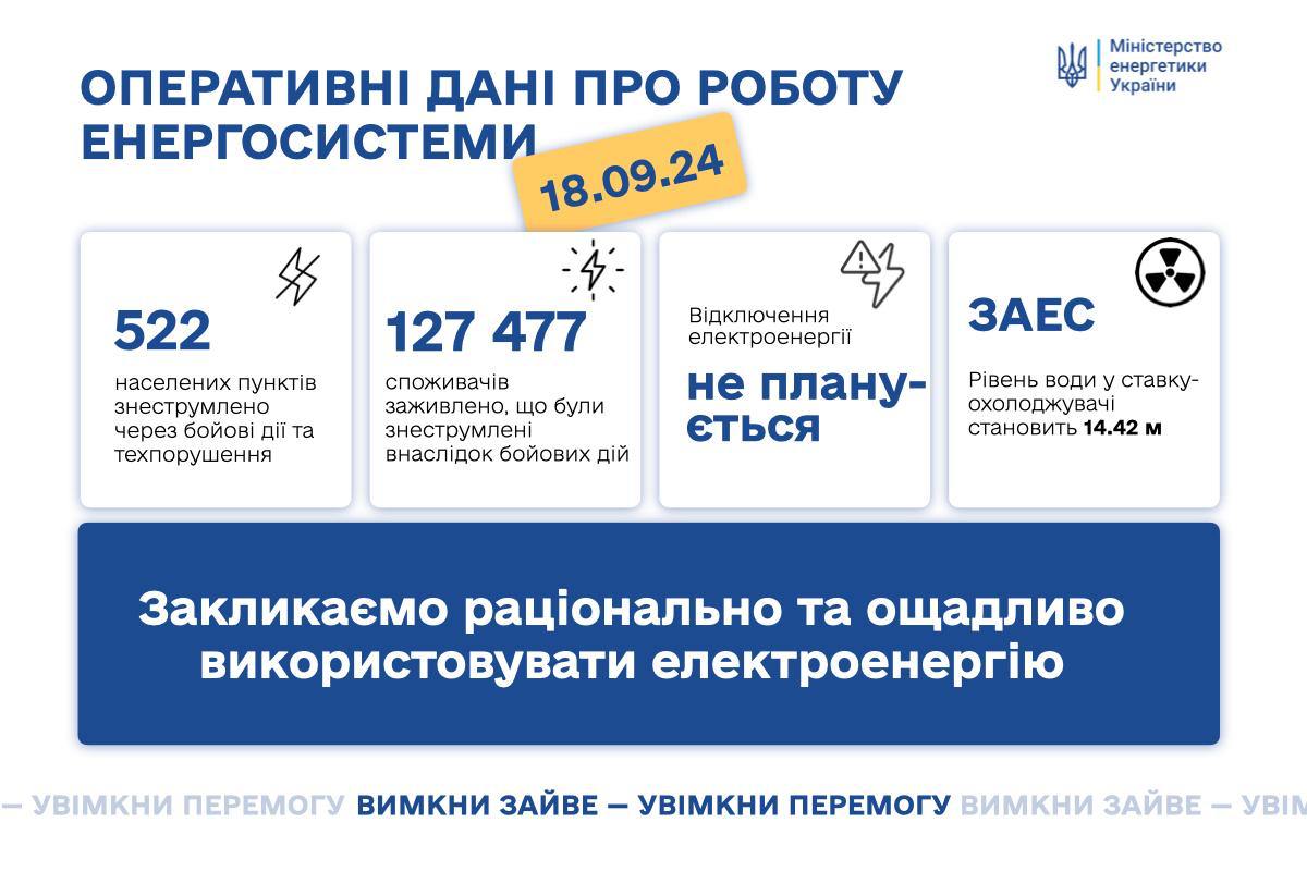 17:15 Завтра, 19 сентября, отключение света не запланированы, сообщает Укрэнерго.