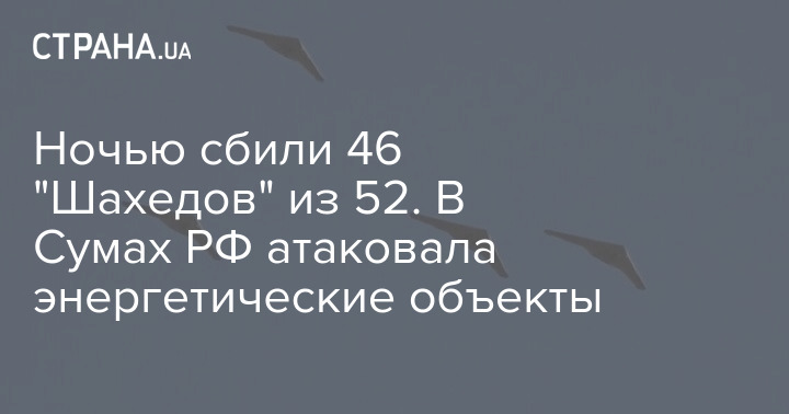 Ночью сбили 46 "Шахедов" из 52. В Сумах РФ атаковала энергетические объекты