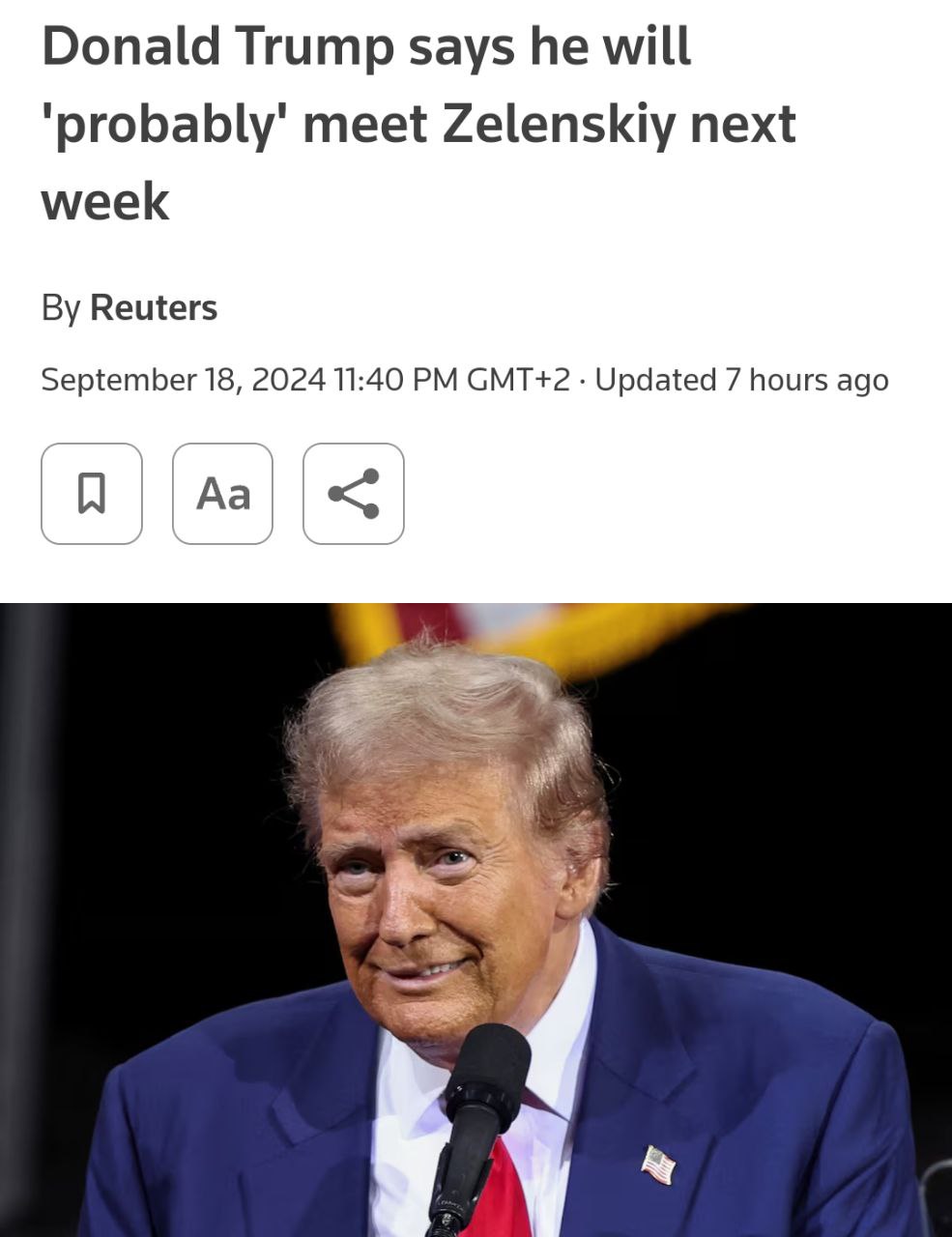7.52 Камала Харрис и Дональд Трамп могут встретиться с Владимиром Зеленским в США на следующей неделе.