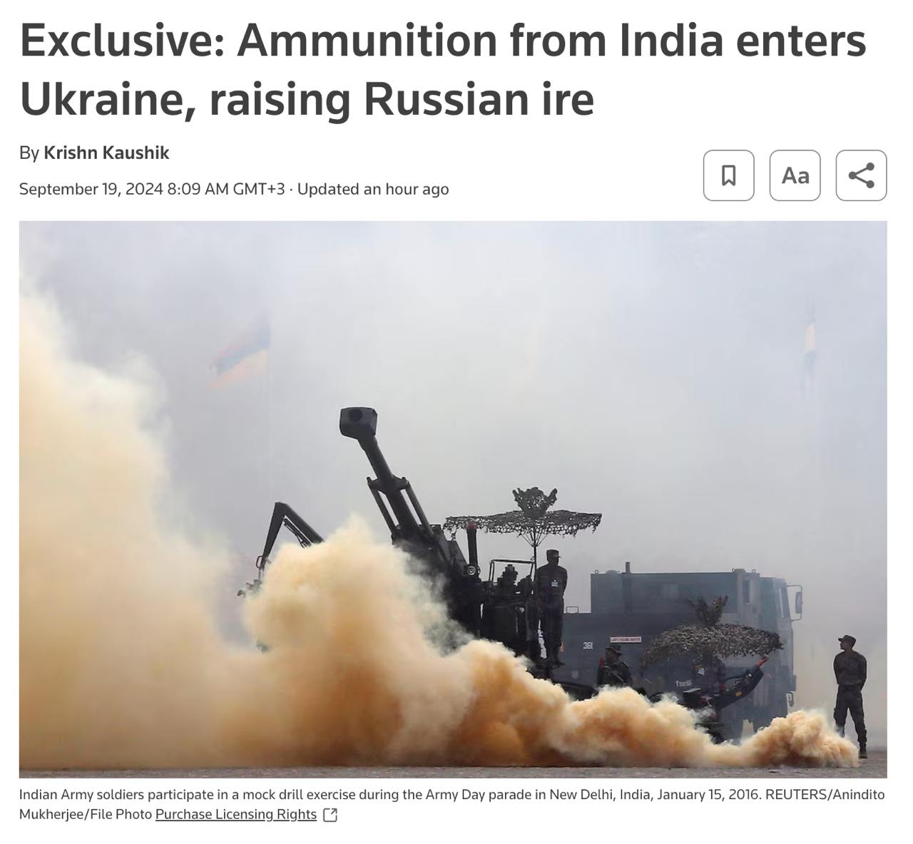 Индийские источники заявляют, что речь идет об очень малом количестве боеприпасов, которые попадают в Украину через Италию и Чехию. Дели рассматривает войну в Украину как возможность развить свой зарождающийся сектор экспорта оружия.