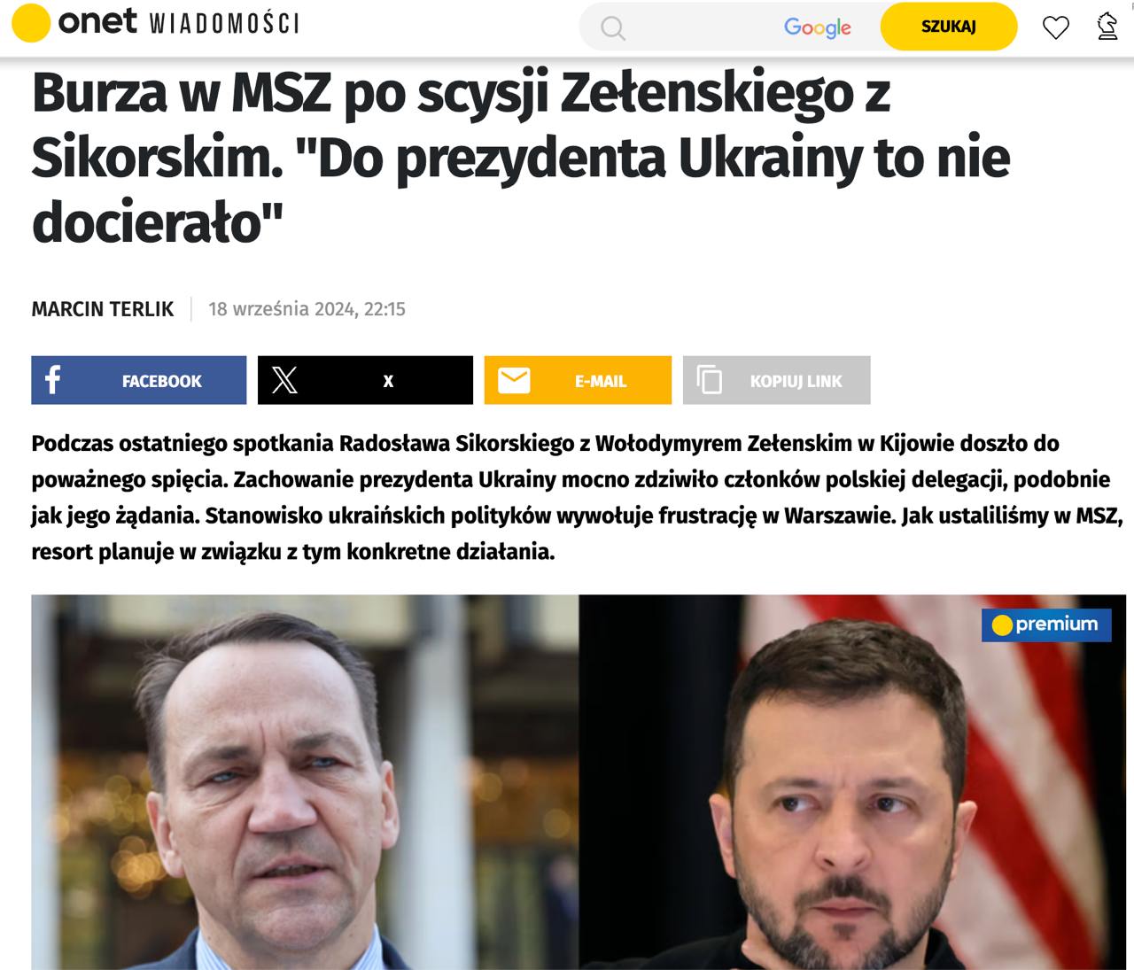 "Сикорский убедил Зеленского урегулировать исторические вопросы с Польшей сейчас, потому что он заплатит за них меньшую цену, чем во время переговоров о вступлении. До Зеленского это не дошло. Теперь украинцы будут приходить к нам по разным делам. Они уже это делают", - говорит источник.
