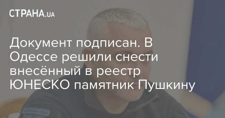 Документ подписан. В Одессе решили снести внесённый в реестр ЮНЕСКО памятник Пушкину