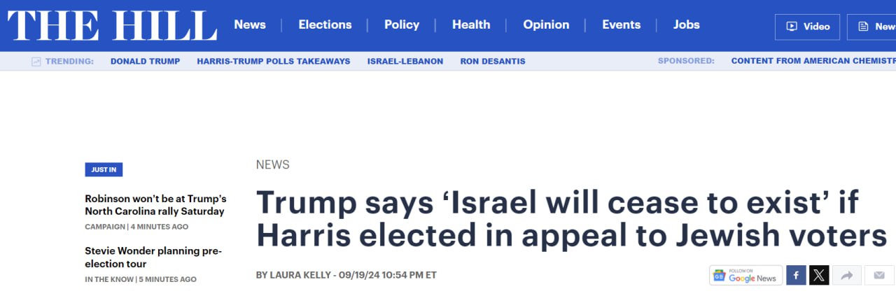 Трамп назвал поддерживающих Камалу Харрис американских евреев "дураками", которым следует "провериться".