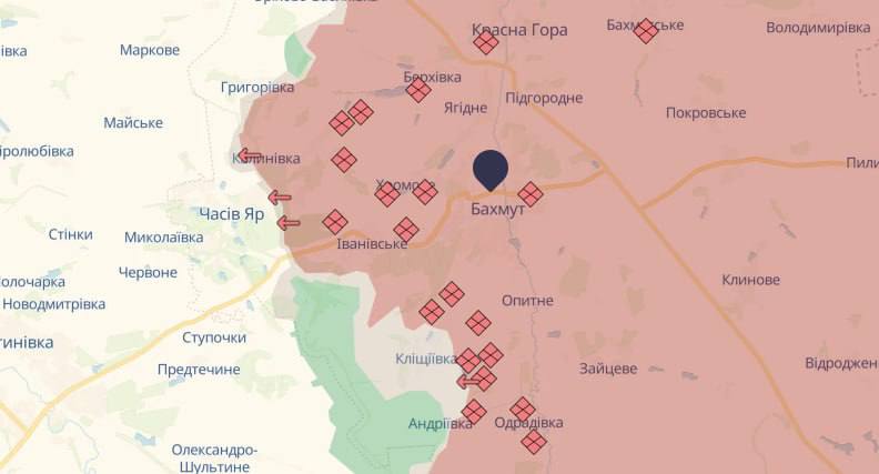 13.40 Российские военные паблики утверждают, что армия РФ взяла под контроль всю территорию к востоку от канала Северский Донец-Донбасс в районе Часов Яра и Бахмута, которую в ходе прошлогоднего контрнаступления освободили украинские войска.