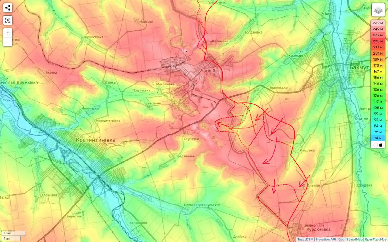 В том числе заявляется, что россиянами захвачены и ключевые высоты в районе Клещеевки, а в ряде мест российские войска смогли перейти и на западный берег канала, "поджимая", тем самым, Часов Яр по флангам.