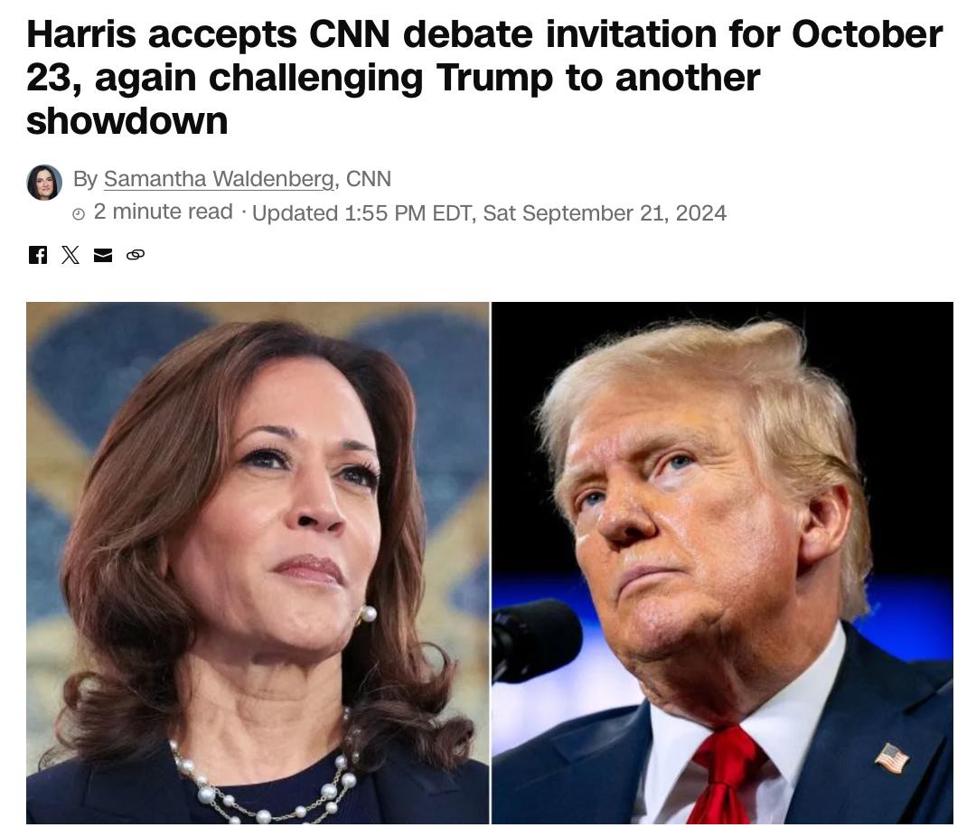 Камала Харрис согласилась на новые дебаты с Дональдом Трампом - CNN