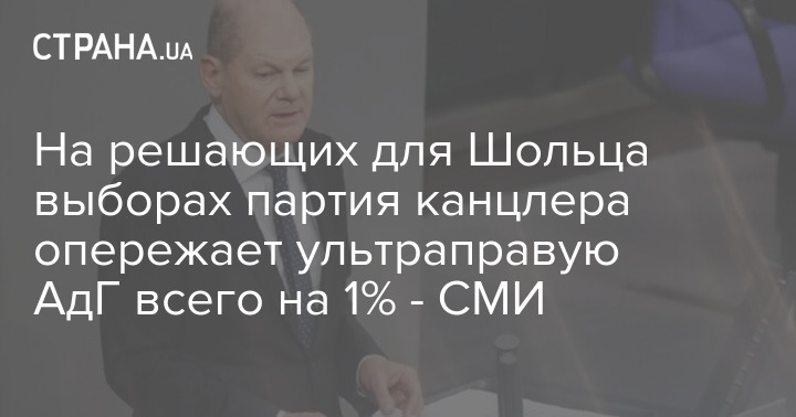 На ключевых для канцлера ФРГ Олафа Шольца выборах в немецкой земле Бранденбург его партия СДПГ "едва опережает" ультраправую "Альтернативу для Германии".
