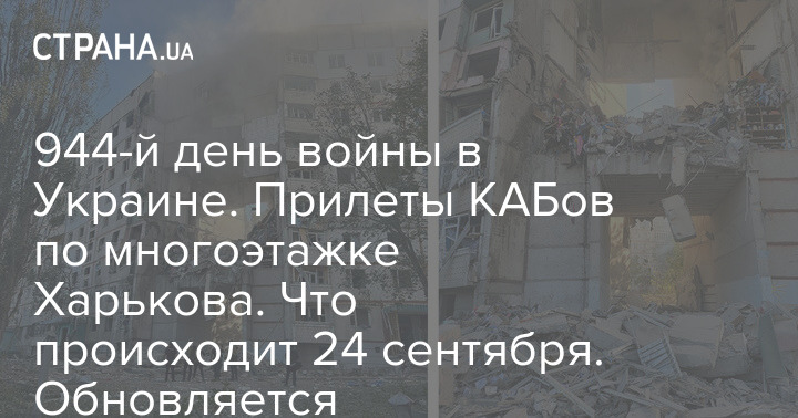 Во вторник, 24 сентября, в Украине идет 944-й день войны с Россией.