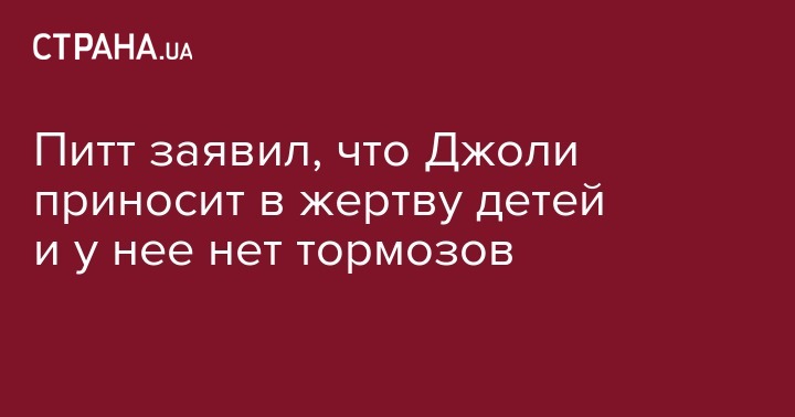 Питт заявил, что Джоли приносит в жертву детей и у нее нет тормозов