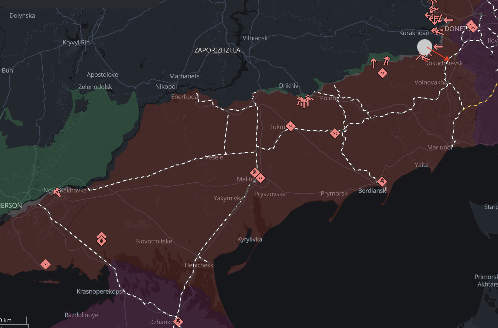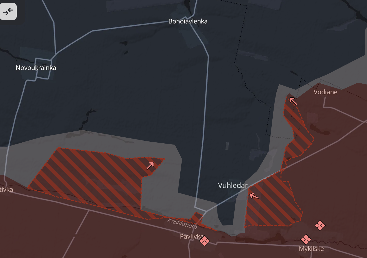 Ситуация начала меняться не в пользу ВСУ после того, как россияне продавили оборону северо-восточнее Угледара - в районе Новомихайловки и затем Константиновки. Позже пало Водяное, а к западу от Угледара - Пречистовка. Все это происходило синхронно с относительно быстрым продвижением на Покровском направлении и к югу от него.