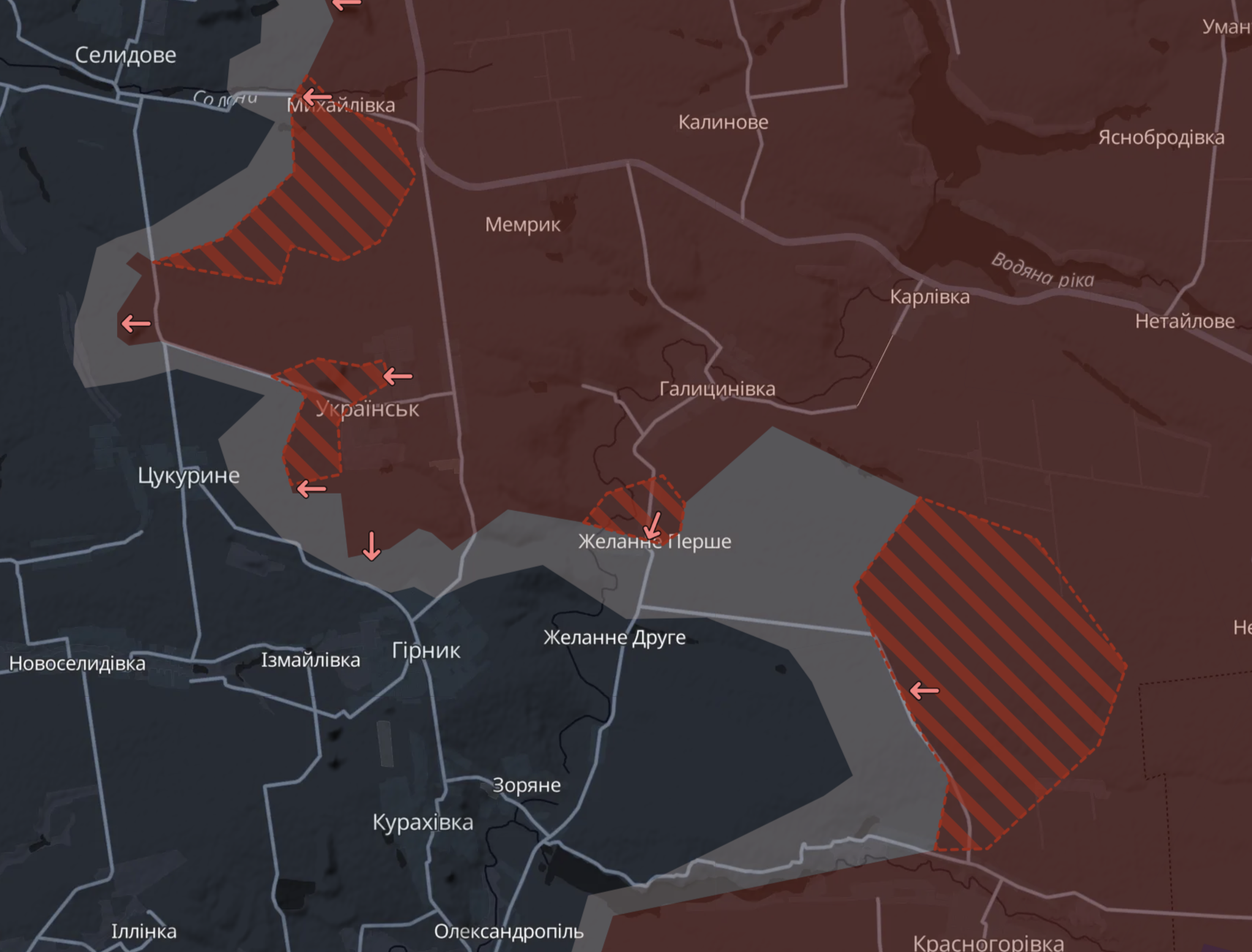 Также, судя по карте, российские войска со стороны Украинска приблизились к Цукурино. И продвинулись под Селидово, приблизившись к городу с юга и востока. Кроме того, россияне заняли новые территории к западу от Невельского.