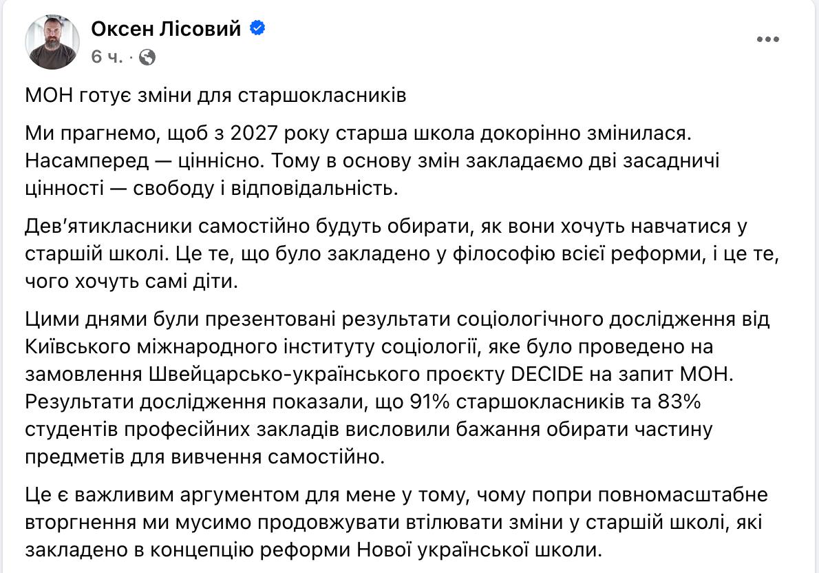 Образование продолжают реформировать. Фото: facebook.com/oksenlisovyi