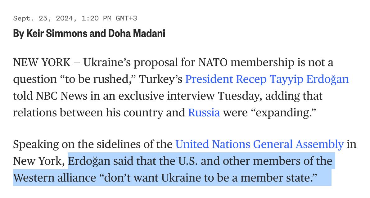Эрдоган сообщил, что в НАТО не хотели бы присоединения Украины