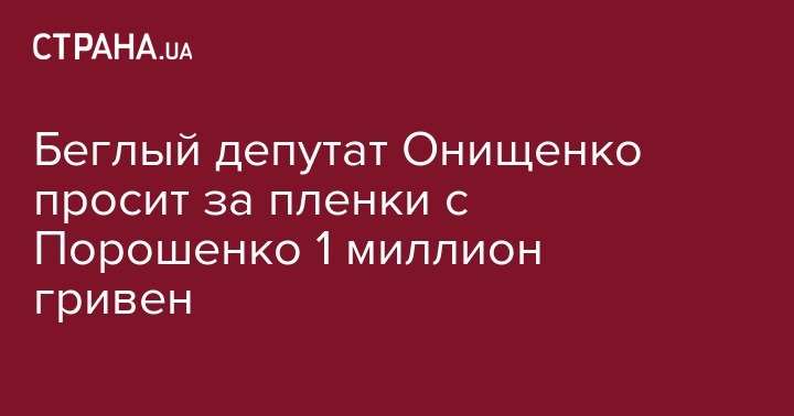 Беглый народный депутат Александр Онищенко намерен выставить на аукцион аудиозаписи, на которых якобы записаны его переговоры с президентом Украины Петром Порошенко - всего за 1 миллион гривен. Об этом сообщила заместитель главного редактора "Страны" Светлана Крюкова на своей странице в социальной сети Facebook